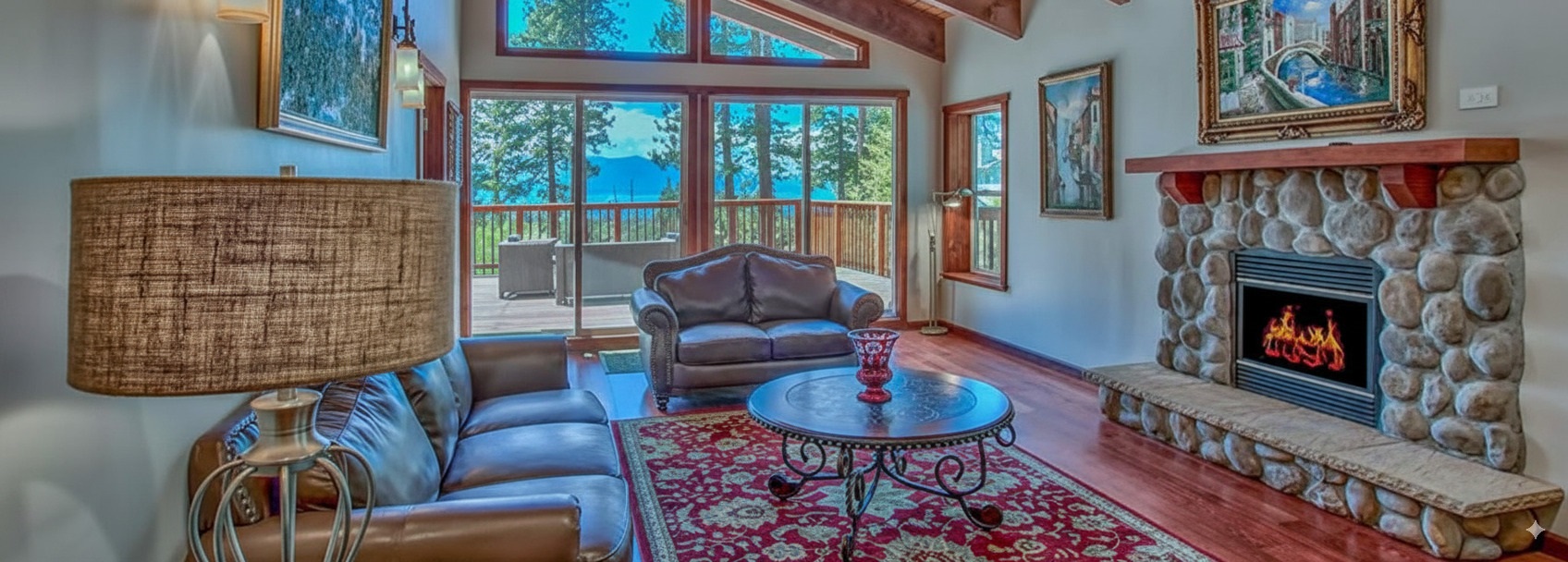 Lake Tahoe View Romantic Getaway 250x 2 guest 1 bedroom extra room 150 Tahoe Heavenly Villa has amazing lake views!. Our Villa is located in the middle of Kingsbury, right on the California state line where you get the best of both worlds. On one hand, the neighborhood is peaceful, quiet, and tranquil. While on the other, you are extremely close to the main town center where you can find the casinos and ski slopes. Close enough to gamble but half the price of the casino hotels. In addition, our jacuzzi tub is located on the huge deck facing west for great sunsets overlooking the mountains and lake. The perfect getaway for summer or winter, only a five-minute drive to